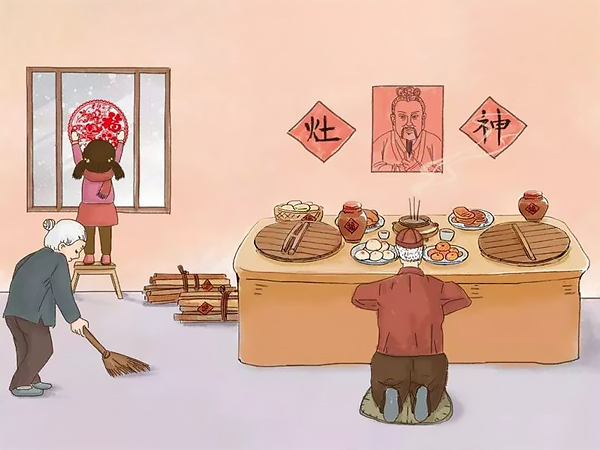 Vlak voor Chinees Nieuwjaar wordt de poster van de Keukengod verbrand en op Nieuwjaarsdag vervangen door een nieuwe. Ook maakt iedereen het hele huis grondig schoon om het nieuwe jaar met een frisse start te beginnen.